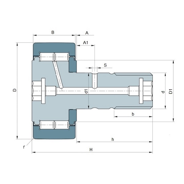 • Elementos rodantes de tipo cilíndrico, de cabeza plana y rectificada. Disposición sin jaula que permite una mayor densidad de rodillos y, en consecuencia, mayor capacidad de carga. Los rodillos trabajan directamente sobre el eje o bulón.