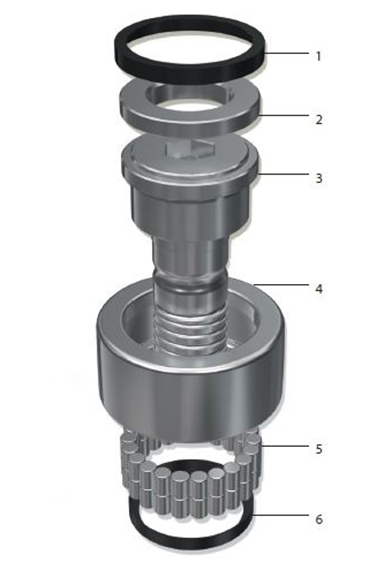 Los rodillos trabajan directamente sobre el eje o bulón, favoreciendo un diseño compacto y robusto.